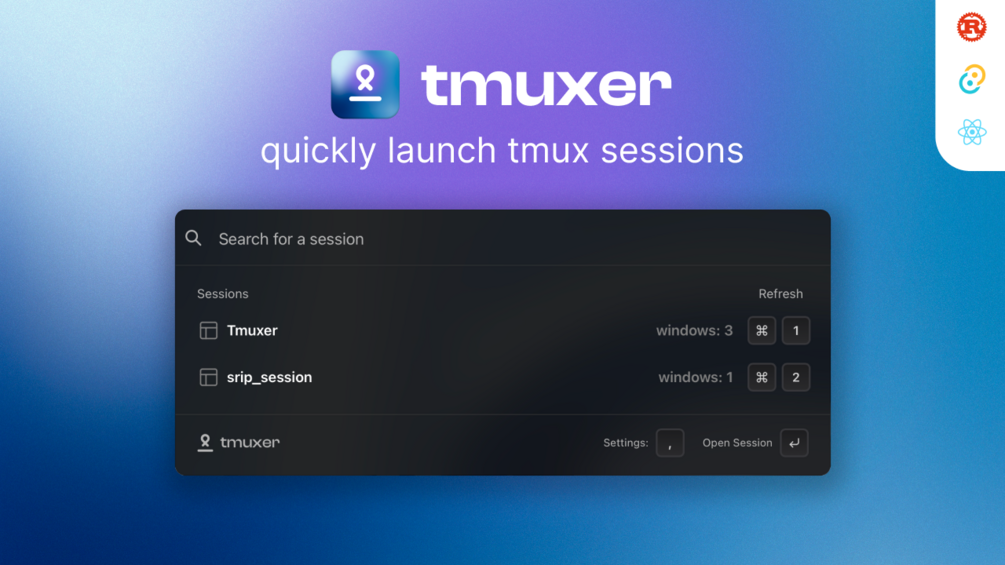 Tmuxer saves your time by allowing you to search & launch Tmux sessions in your specified Terminal Emulator.